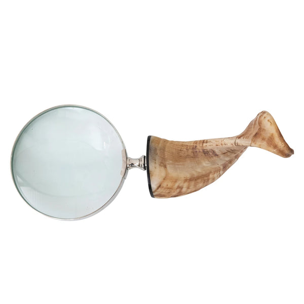 4" Round x 9-1/2"H Stainless Steel Magnifying Glass w/ Horn Handle (Each One Will Vary)