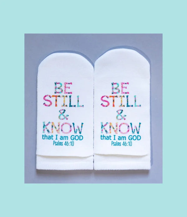Standing on the Word Socks Flower Letters with verse: Psalm 46:10 Be Still and Know