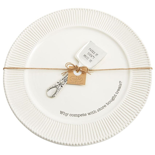 OVERVIEW 2-piece set. Round ceramic sweets plate features fluted rim with raised beaded detail, debossed sentiment surface and arrives tied with stamped silverplate spatula. DETAILS Size: plate 12" | server 6"...