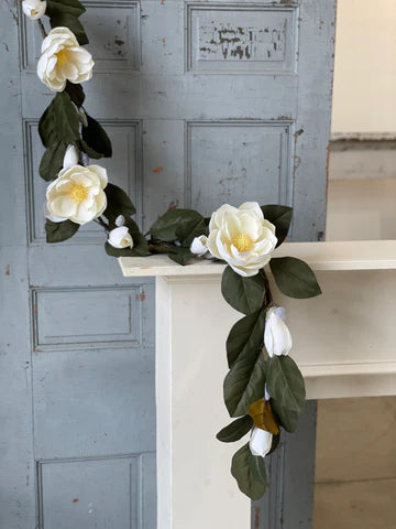 Gorgeous multi-petaled blooms and buds grace stems of magnolia leaves to create a timeless and elegant collection. materials: plastic, polyester, paper wrapped wire & branch like plastic base Other decorations sold...