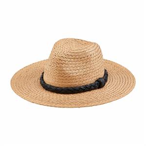Paper straw fedora with braided straw accent band features adjustable interior strap.