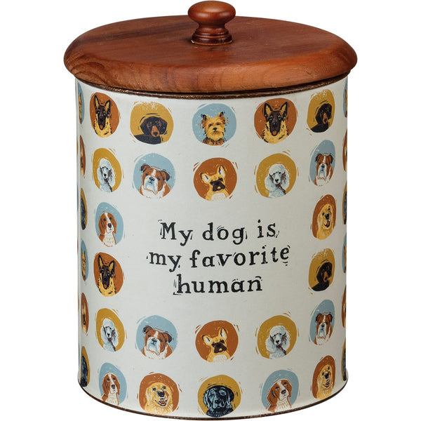 Treat tin features front "My Dog Is My Favorite Human" and back "Home Is Where Your Dog Is" sentiments. Complements well with other pieces in collection to create a cohesive...