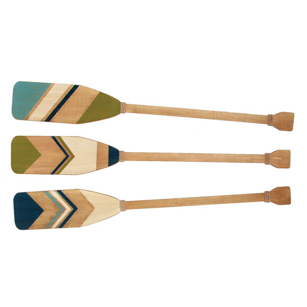 The perfect accent for anyone who loves time spent on the lake! Wood oar features handpainted designs and rope detail. Two eye hooks included for easy mounting. 3 assorted styles....