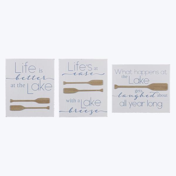 WOOD TABLETOP/WALL LAKE SIGNS, 3 ASSORTED