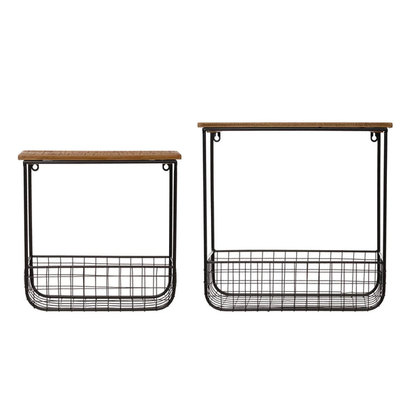 Wood Wall Shelves with Metal Baskets